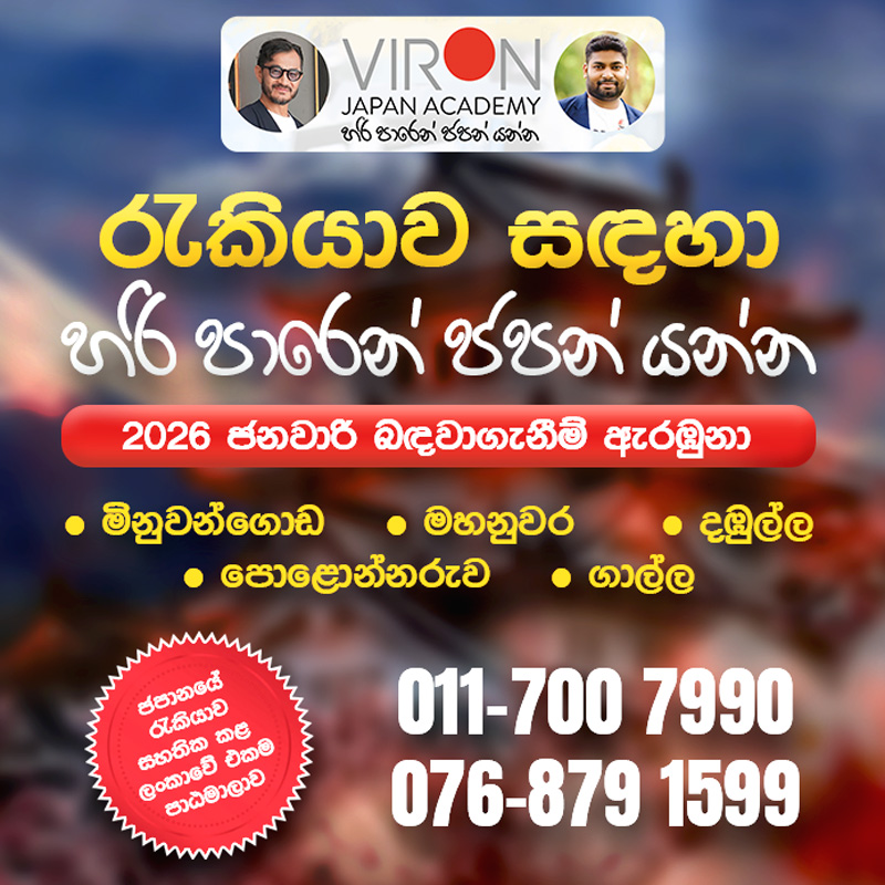 ලියාපදිංචි වෙන්න පුළුවන් අවසාන දවස 2025/12/25 නිසා ඔයාට ළගම Viron Japan Academy ශාඛාවට ඉක්මනටම එන්න.